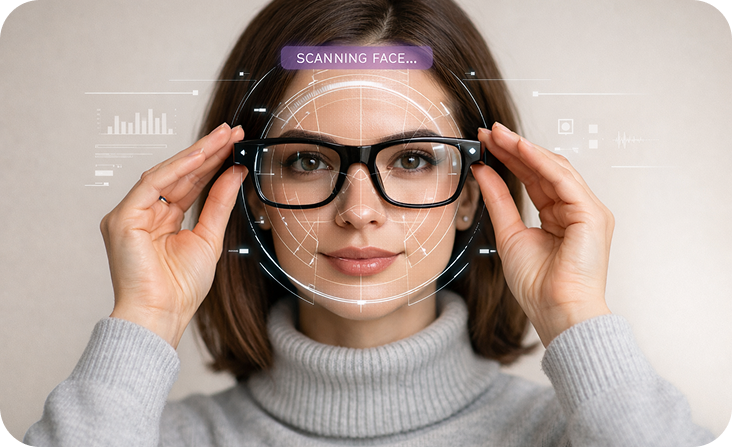 Use your webcam to instantly visualize how different frames look on you — no downloads required.