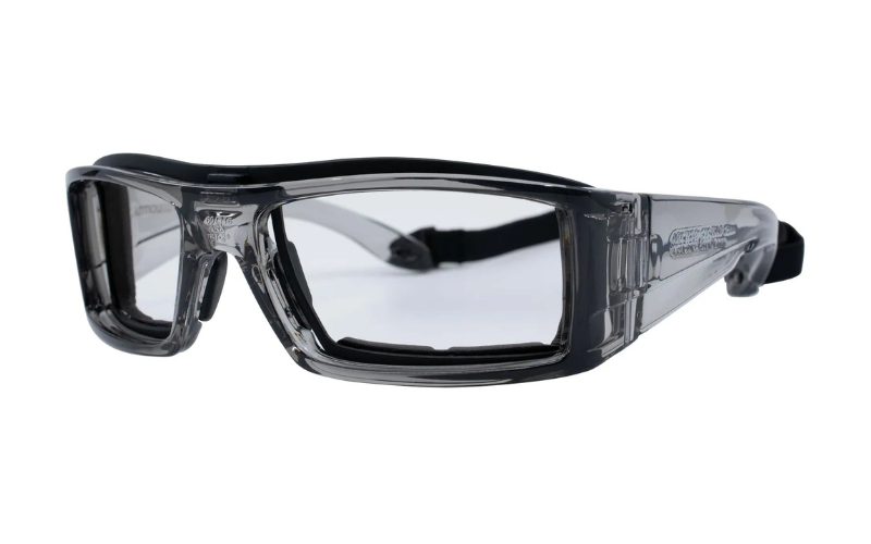 The ArmouRx 6009 Safety Glasses are made of plastic, lightweight and perfect for any work environment. These ArmouRx prescription safety glasses are ANSI Z87.1, and CSA Z94.3 approved. Available in black, crystal, and gray, the ArmouRx 6009 is prescription available and extremely comfortable. The ArmouRx 6009 is a wrap around full-frame that features a foam gasket, an additional strap, and rubber nose pads.
